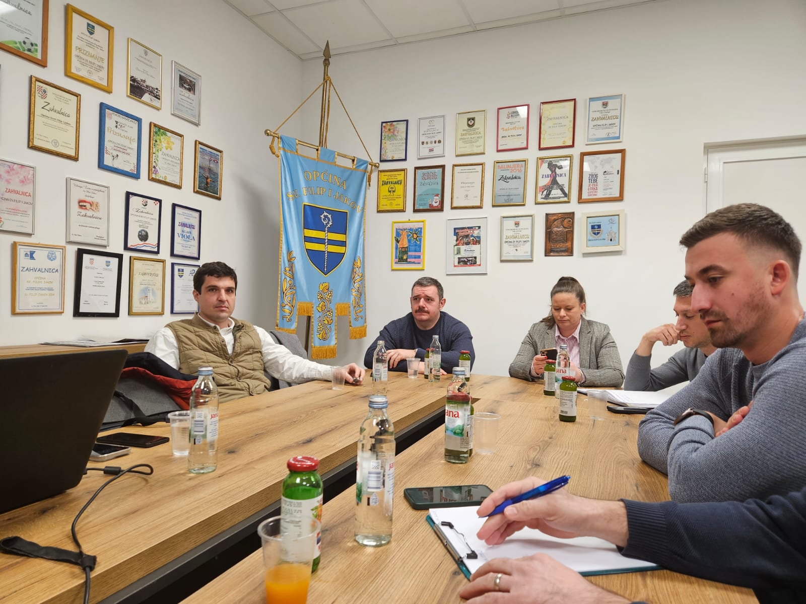 Sastanku su prisustvovali predstavnici Općine Sv. Filip i Jakov: načelnik Zoran Pelicarić, vijećnici Marin Colić, Anamarija Matešić i Marijana Mrvičić, pročelnik Jure Jelenić te voditelj Odsjeka za EU fondove Darko Mikas.